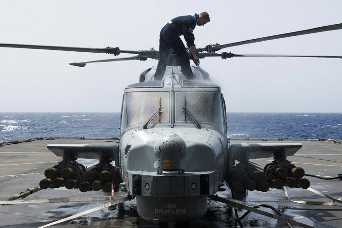 Two Wildcat helicopters can be operated from Type 45 destroyers, and it is possible that two of these helicopters will be “picked up” as the deployed ship sails along the south coast of England passing RNAS Yeovilton on its way south. Alternatively, if deployment is to be accelerated, Wildcats can be easily transported by air on a C-17 Globemaster III or Airbus A400M Atlas C1.