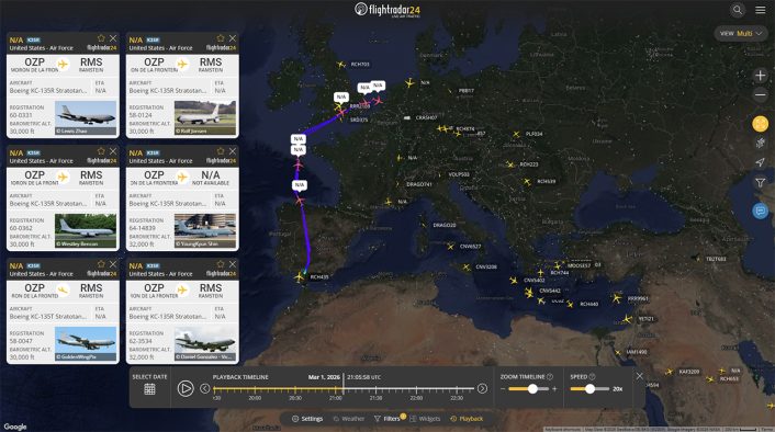 American refueling planes leave Spain bound for Ramstein, Germany. (Image credit: Flightradar24.com)