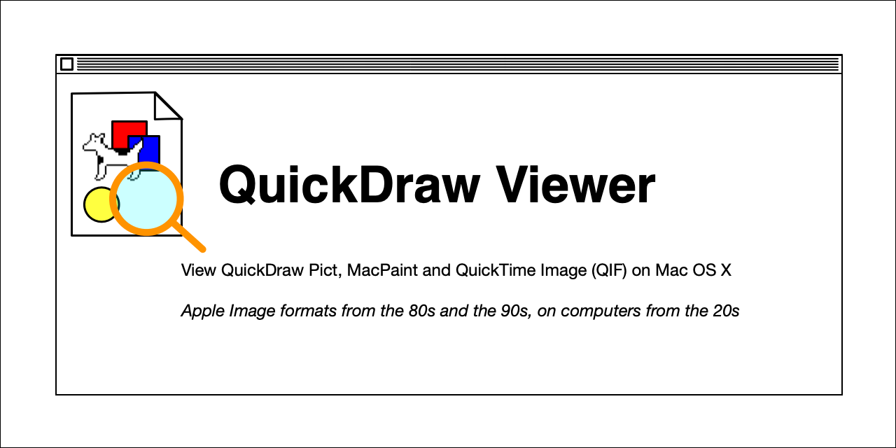 quick drawing was the graphical language of the original Macintosh and the format used to store and exchange images on the computer. The original interpreter was largely written on Motorola 68K by the late Bill Atkinson. Support for these files has been slowly declining with newer versions of Mac OS X, and on my PowerBook M1, Preview can only open a small subset of the files I have.